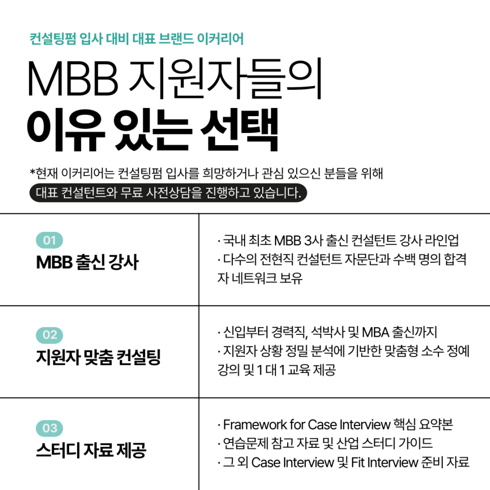 왜 이커리어 BIG3(MBB) Class를 수강해야 하는가?