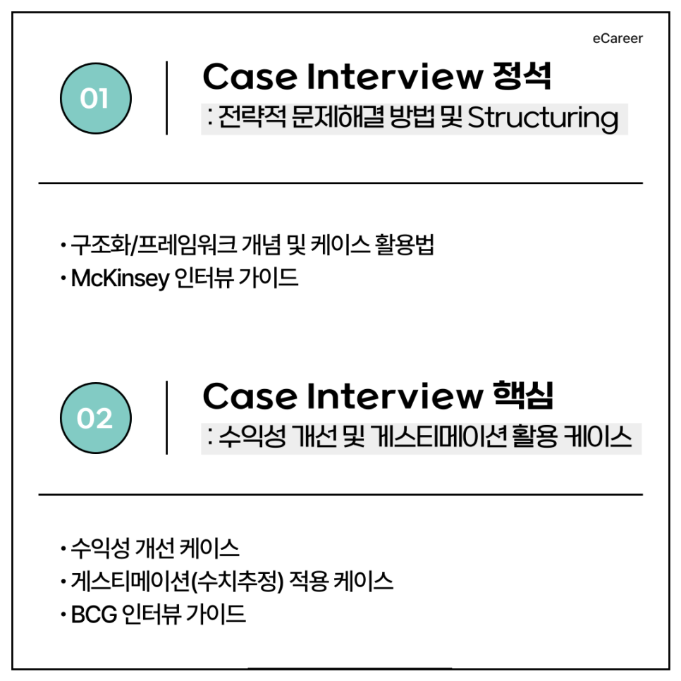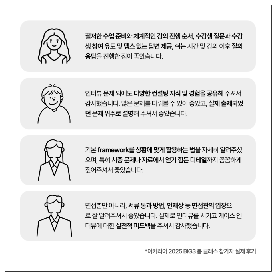 [BIG3 클래스] 이커리어 MBB 컨설팅펌 입사대비 케이스 인터뷰 6주 과정 커리큘럼 소개(2025.7월 개강)