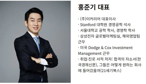 이커리어는 서울대학교 공대·경영학, 스탠퍼드 경영공학, 삼성전자 출신의 대표 컨설턴트가